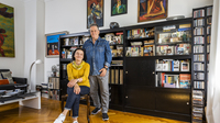 Nur ein einziges Möbelstück aus DDR-Zeiten steht noch im Wohnzimmer der schönen Altbauwohnung: Eine Hellerau-Schrankwand, die fast die gesamte linke Wand bedeckt. Sie hat als Möbelklassiker die Jahrzehnte überdauert: als Ort für ihre Bücher und Platten, nicht als Erinnerung an vergangene Zeiten, darauf legen beide Wert. „Sie ist zeitlos schön und bietet viel Stauraum“, sagt Beate. „Sie ist zweckmäßig, weil viele Bücher reinpassen“, ergänzt Armin. Mit der DDR verbinden die beiden höchstens die Geschichte, wie sie das gute Stück ergatterten: